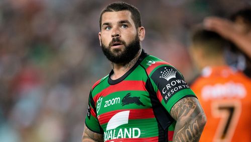 Adam reynolds of the rabbitohs takes on the sharks defence.